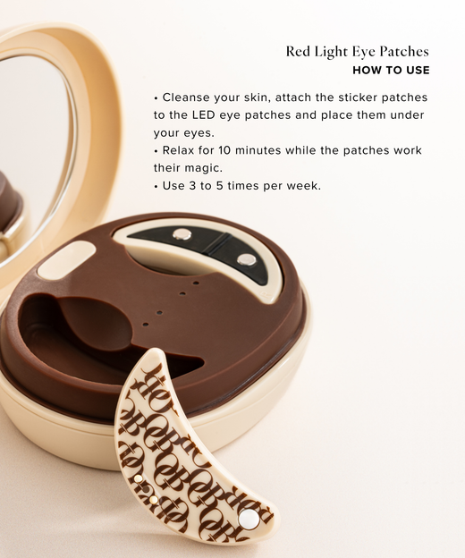 Reinig je huid, bevestig de sticker patches op de LED oogpatches en plaats ze onder de ogen. Houd de powerknop ingedrukt om het apparaat aan te zetten en kies het gewenste niveau, waarbij je de intensiteit rustig opbouwt. Wij adviseren een maximum te hanteren van 5 minuten per sessie. Ontspan terwijl de patches hun werk doen, het apparaat schakelt automatisch uit na elke sessie. Verwijder de sticker patches na gebruik, deze zijn voor eenmalig gebruik. Reinig de LED oogpatches met alcohol en plaats ze terug in de oplaadcase. Gebruik 3 tot 5 keer per week en vermijd contact met water. Vervolg je routine met de Miracle Eye Cream, laat deze even intrekken en sluit af met de Instant Eye Tightener.