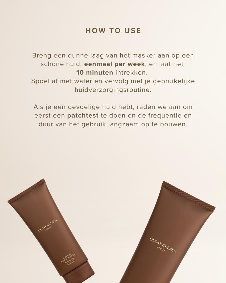 The Olcay Gulsen Beauty Supreme New Skin Mask is your ultimate at-home skin reset. This luxurious wash-off mask blends exfoliating acids with an intensive hydrating complex, wrapped in a rich, creamy texture that glides effortlessly over the skin. The result is visibly smoother, softer skin with a fresh, natural glow. New skin, new confidence.