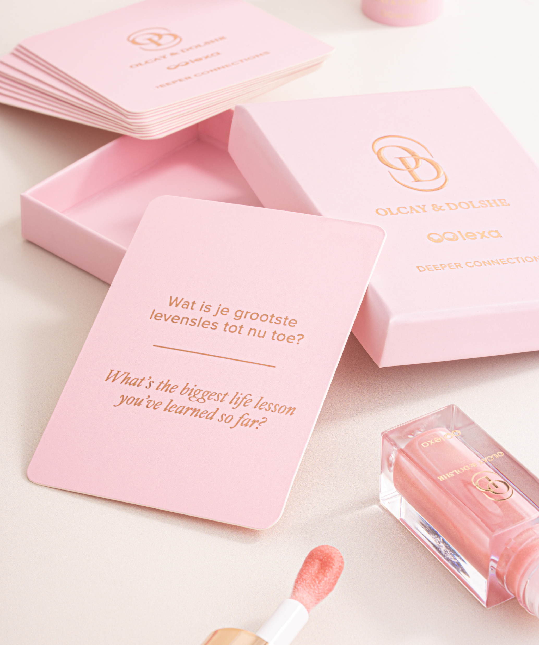 Inside the makeup case, you’ll find all the tools to bring out your best glow: a gorgeous lip oil, a pigmented mini mascara, and a multi-use stick to add a subtle flush to your cheeks, lips, or eyes. Plus, Lexa’s Dating Questions are included to help spark meaningful conversations, so you’ll never have to fall back on the weather talk again.
