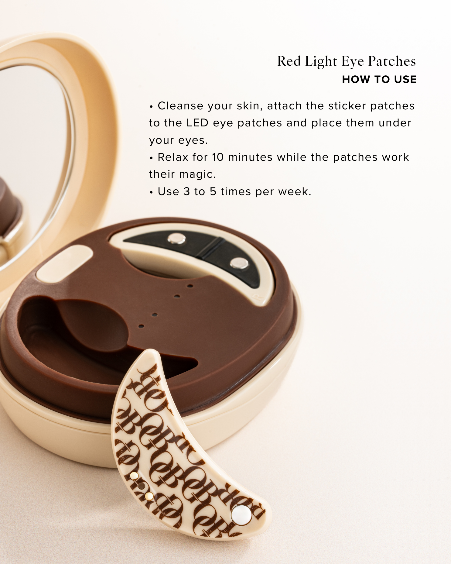 Each patch is equipped with 12 red LED lights (660 nm) and 3 levels of microcurrent. This powerful combination helps stimulate collagen production, boost blood circulation and support firmer skin with a smoother texture. Pro level results, no appointment needed.
