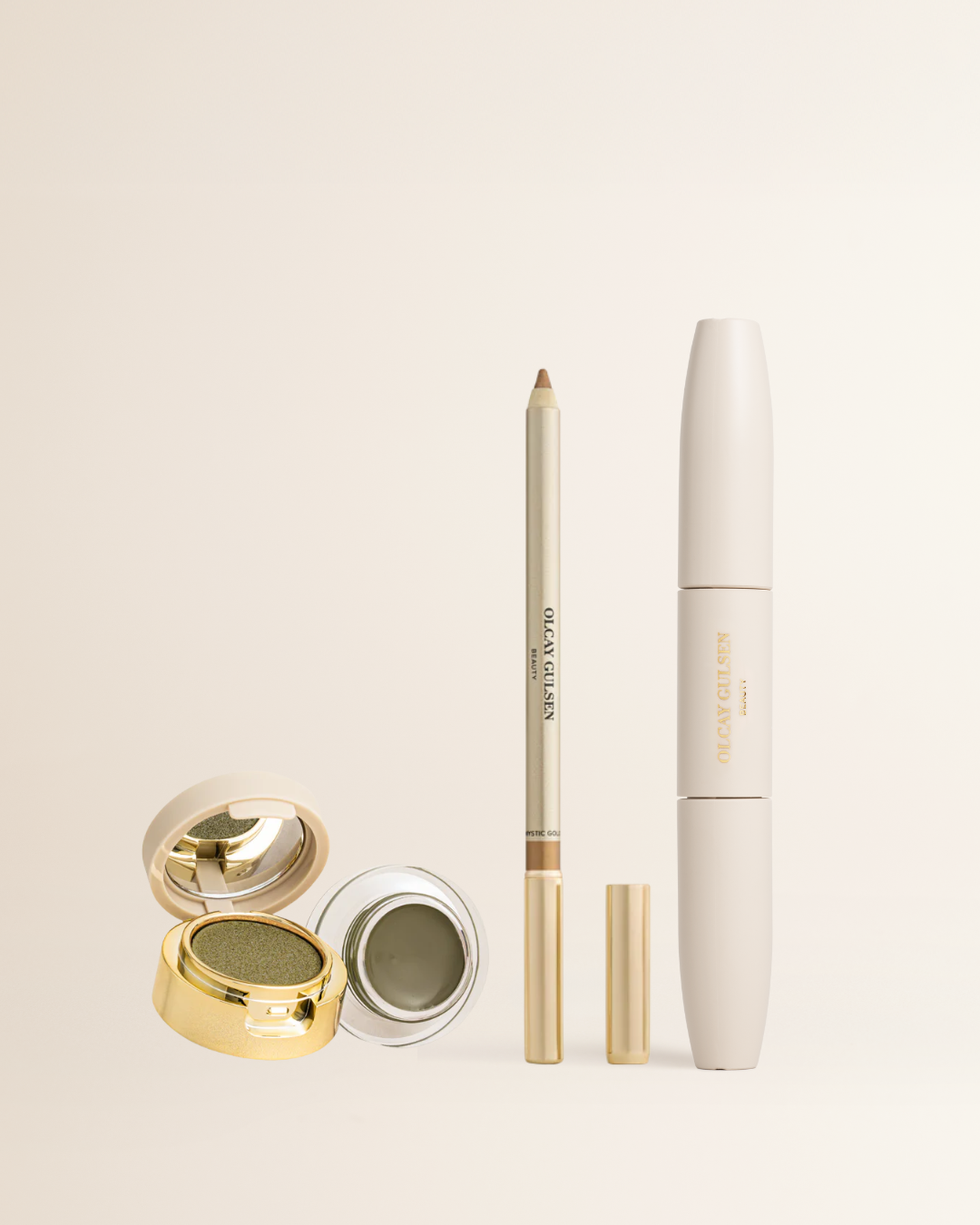 Midnight Moss geeft je die rijke, smokey look met een zachte cream-to-shimmer finish die moeiteloos blendt. Mystic Gold voegt een luxe, gouden liner accent toe. Lash Goals maakt de look compleet met volle, gedefinieerde wimpers die de hele dag blijven zitten, zonder gedoe.