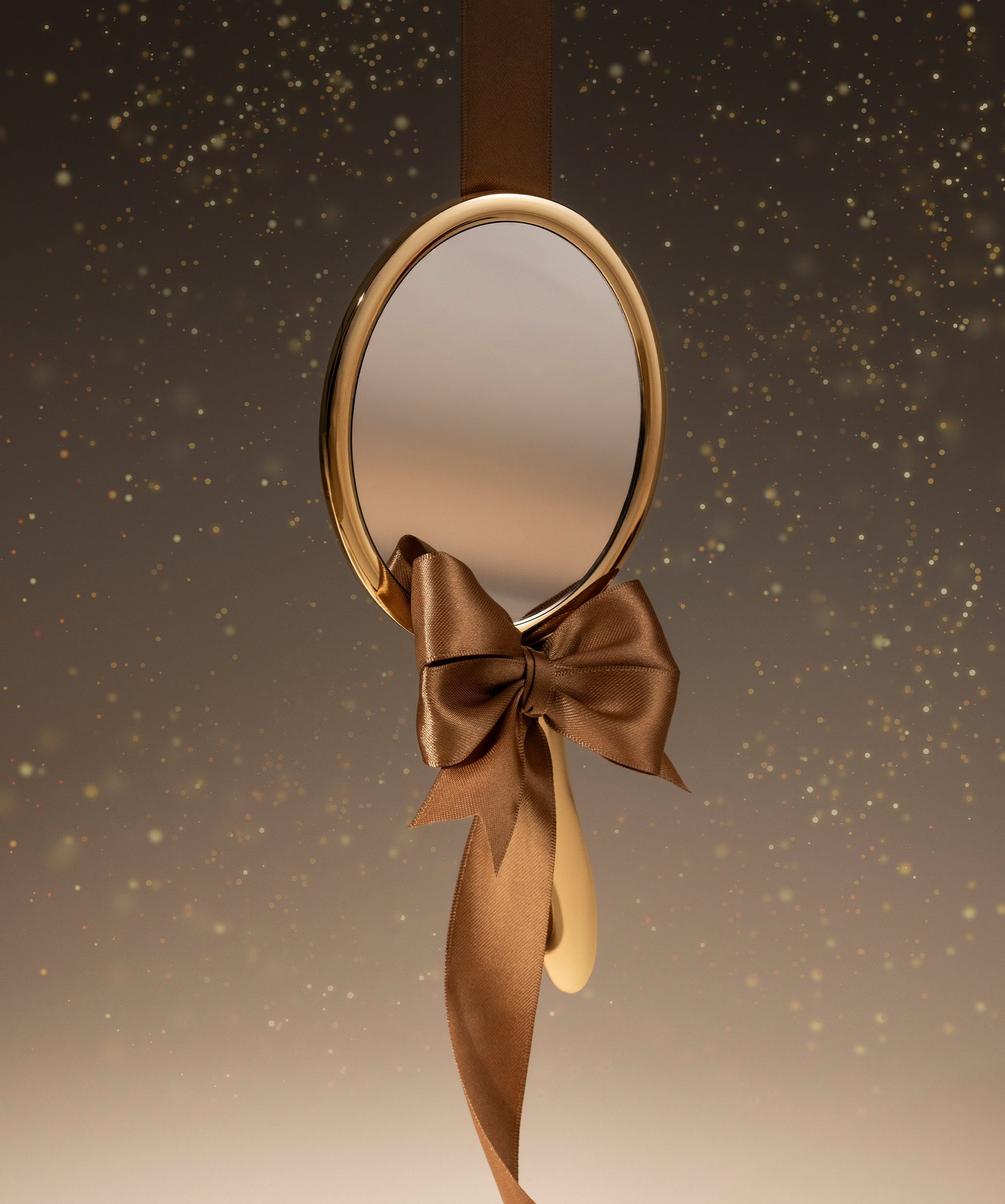 Need a quick makeup check? The Olcay Gulsen Beauty Merry Mirror is the perfect blend of glamour and practicality. This golden hand mirror features the iconic OGB logo and a glossy, pearlescent finish with subtle gold foil details that bring a touch of affordable luxury to any dressing table. Ideal for perfecting your makeup or checking the back of your hairstyle before you head out.